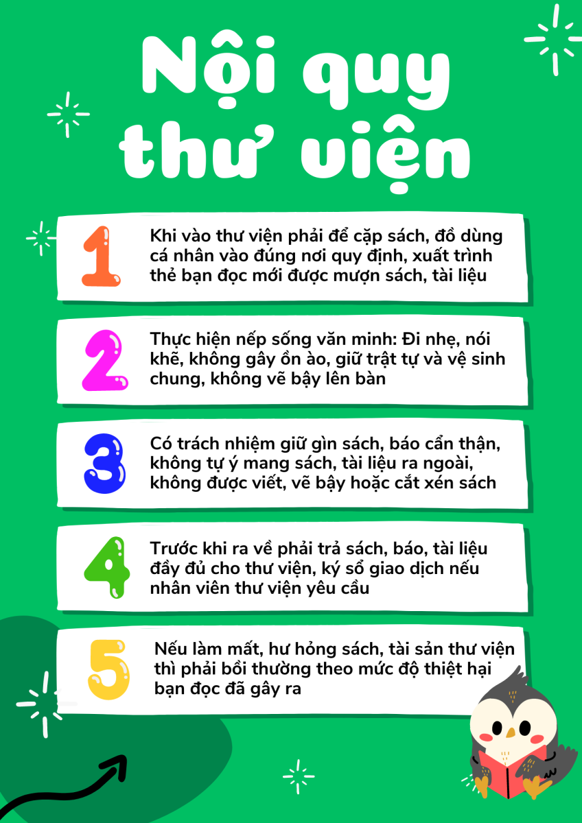 Thư viện có trách nhiệm thông báo Nội quy tới tất cả bạn đọc. Bạn đọc có trách nhiệm thực hiện nghiêm túc các quy định trong nội quy này.